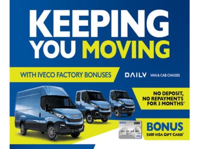 Keeping you moving Posted: Wednesday June 17, 2020 With Iveco Factory Bonuses Baily van & Cab Chassis No Deposit, No Repayments for 3 Months Bonus $500 Visa Gift Card Ross Mackenzie Sales Consultant M: 0427 923 113